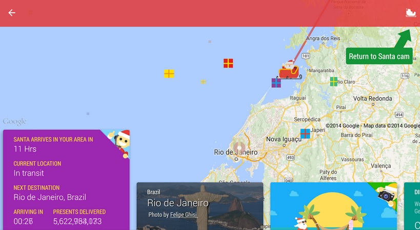 Google Maps Santa TrackerComo ya sabemos, estamos a pocos días de festejar la Navidad y que Santa Claus reparta muchos regalos a los niños que se han portado bien, todos comprendemos que esta no es una tarea fácil y como era de esperarse Santa y sus elfos se han actualizado, para que esta tarea sea más sencilla, han creado una alianza con Google Maps y han creado Google Maps Santa Tracker para que podamos ver su recorrido el próximo 24 de diciembre y a la vez aprender sobre las tradiciones que se practican en los diferentes lugares que visita.